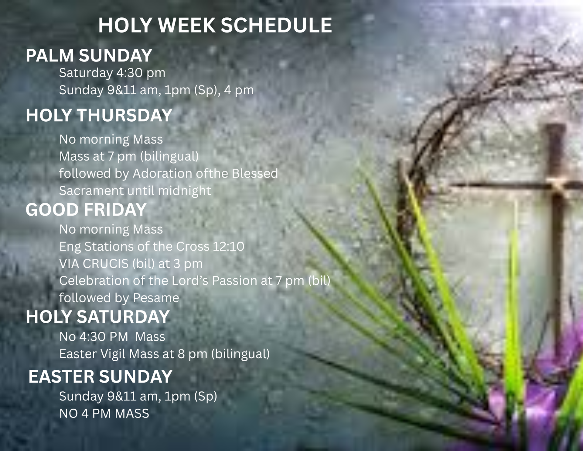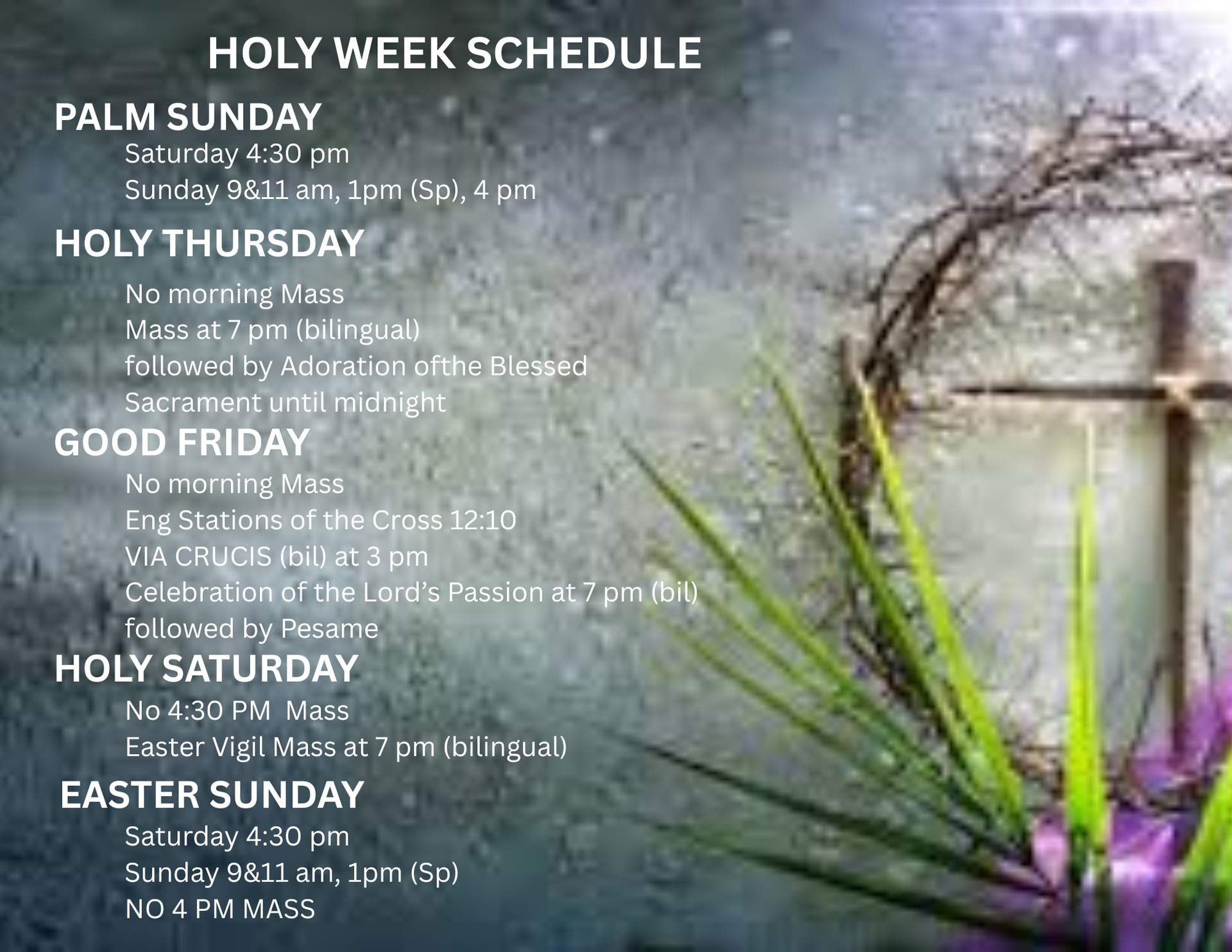 Anticipated Mass (Spanish) - eve of Holy Day at 7:00 pm